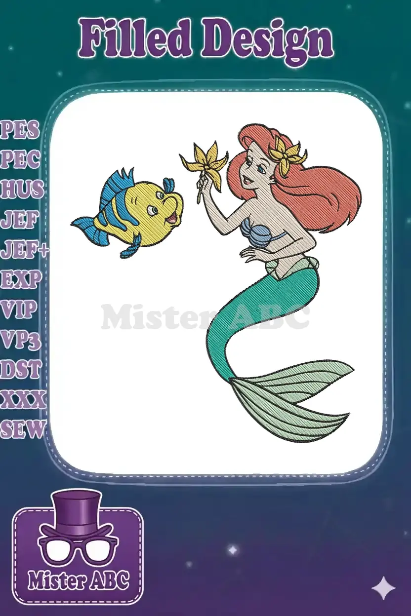 Ariel and Flounder Happy Friendship Undersea Embroidery Designs