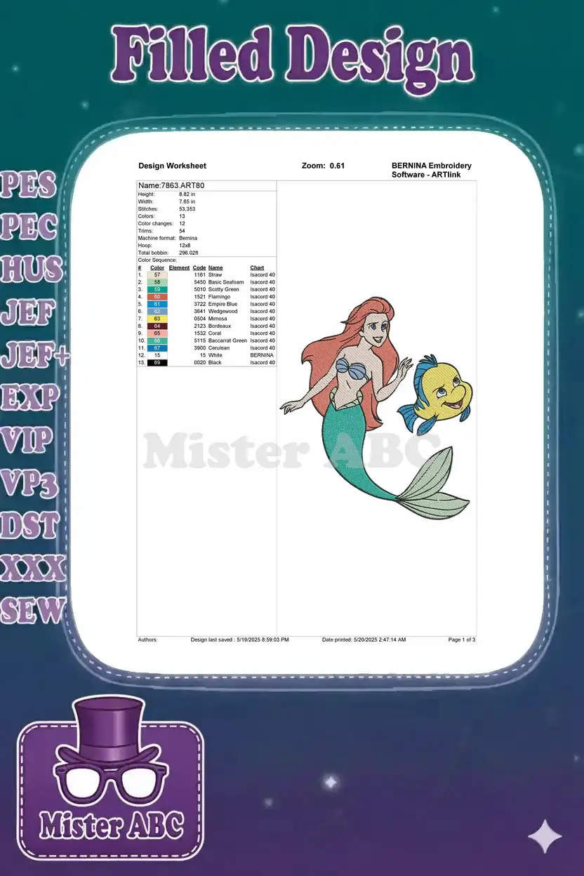 Ariel and Flounder Little Mermaid Disney Character embroidery designs