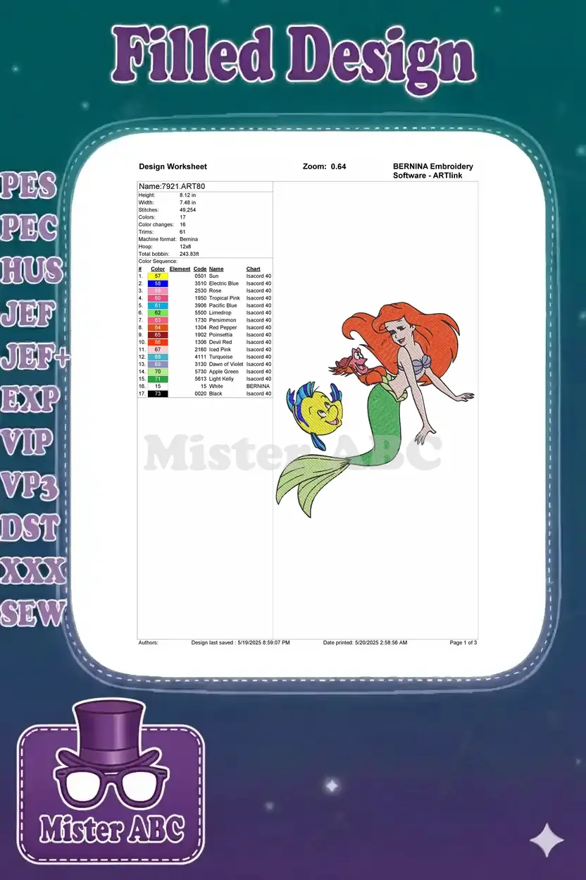 Ariel Little Mermaid Sebastian Flounder Disney embroidery designs