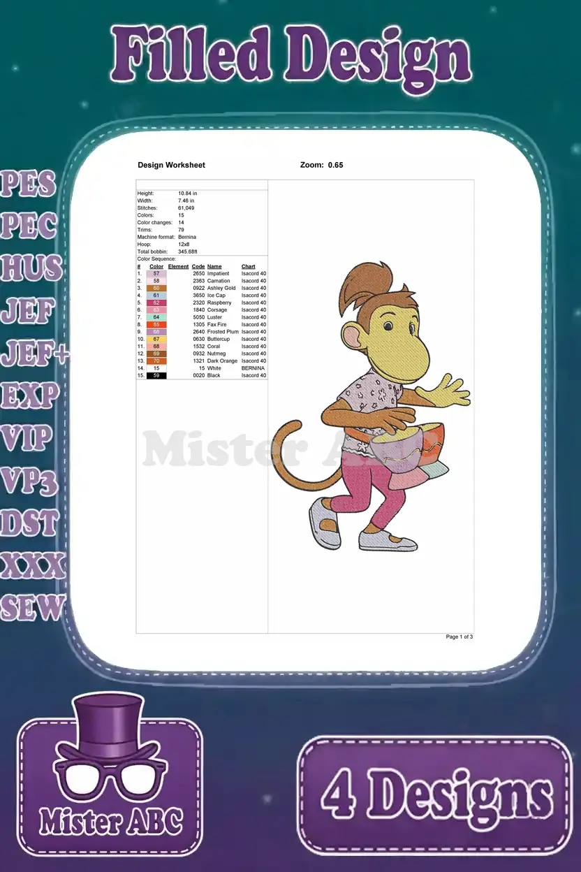Babar And Friends Young Elephant Playing Ball Monkeys Sports Jungle Fun Designs – Filled Embroidery Design