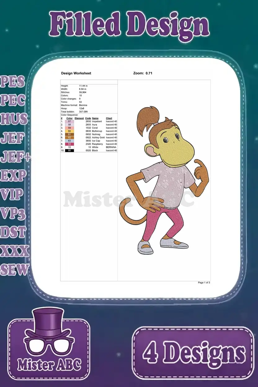 Discover our delightful bundle of four filled embroidery designs featuring playful cartoon animals. Perfect for adding charm to any project!
