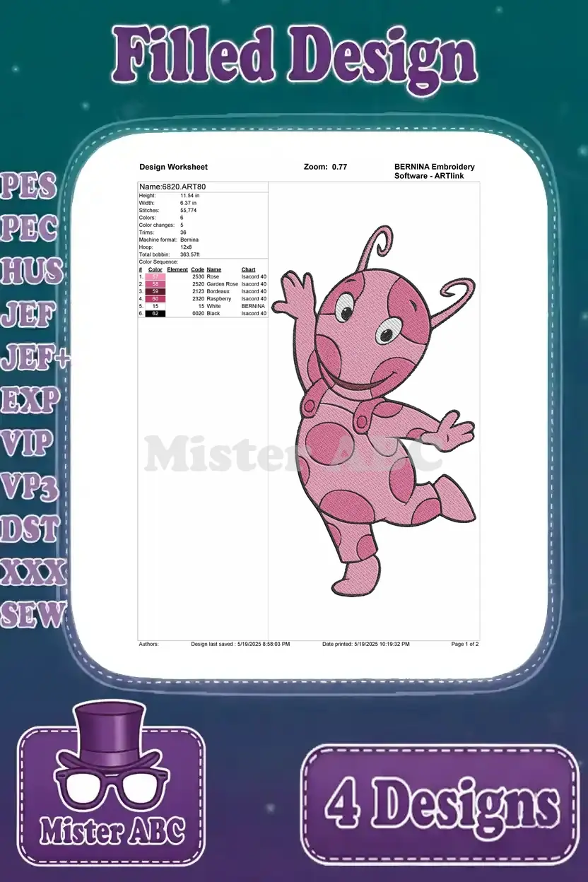 The Backyardigans - Uniqua Pink Creature Ladybug Form Uniqua And Tasha The Hippo - Backyard Adventure Friends - Filled Embroidery Design - Instant Download The Backyardigans – Uniqua Pink Creature Ladybug Form Uniqua And Tasha The Hippo – Backyard Adventure Friends – Filled Embroidery Design – Instant Download