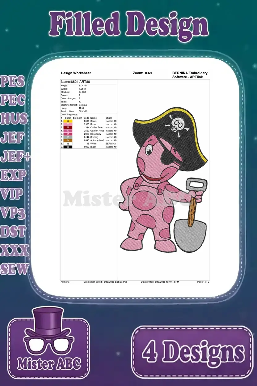 A delightful bundle of four filled embroidery designs featuring Uniqua and Tasha from The Backyardigans.