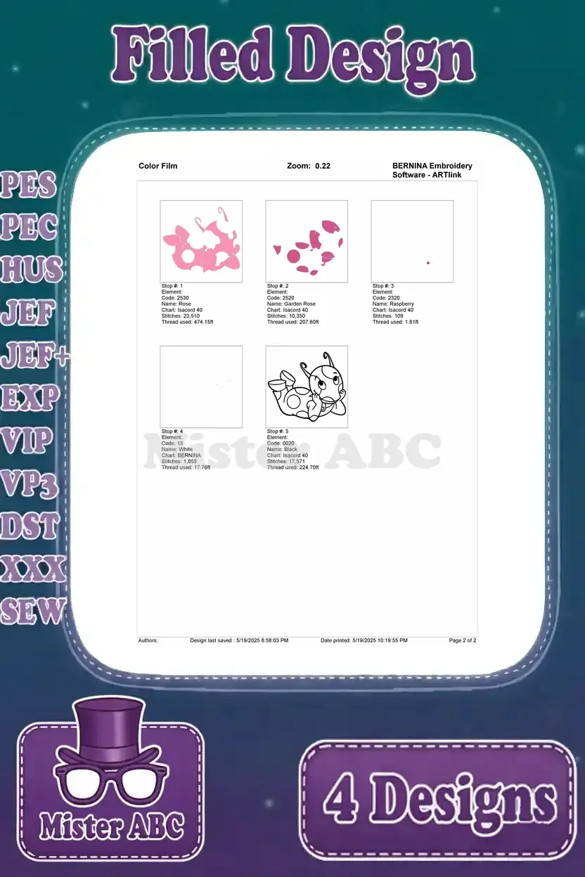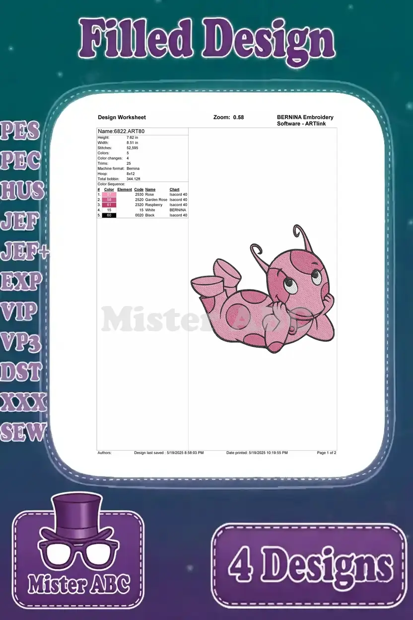 The Backyardigans – Uniqua Pink Creature Ladybug Form Uniqua And Tasha The Hippo – Backyard Adventure Friends – Filled Embroidery Design