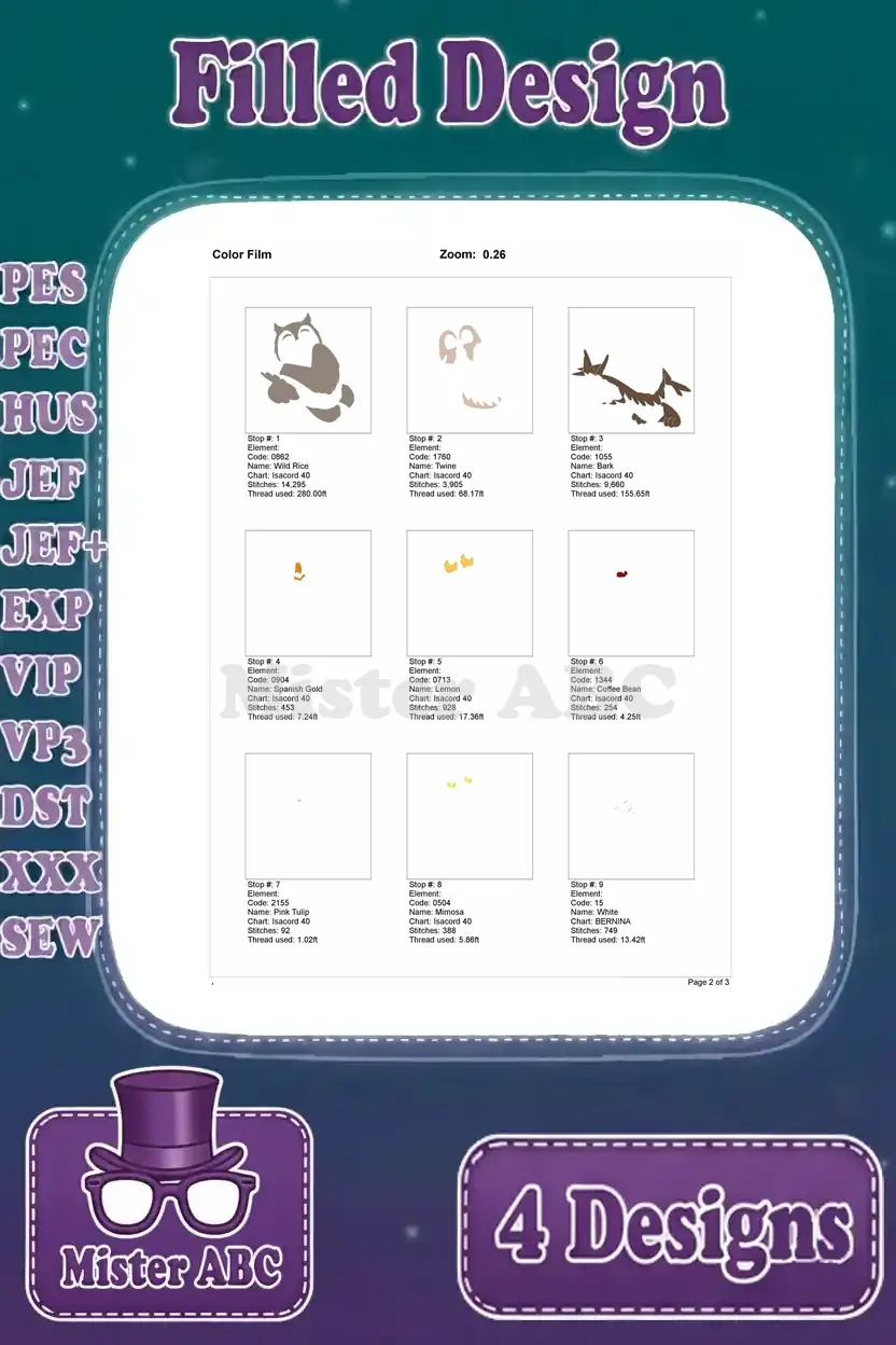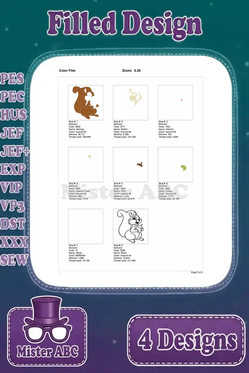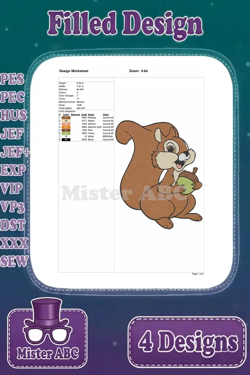 Bambi Friend Owl Bluebirds And Squirrel Wise And Playful Forest Characters – Filled Embroidery Design