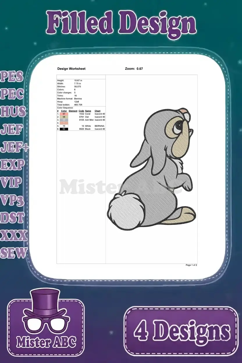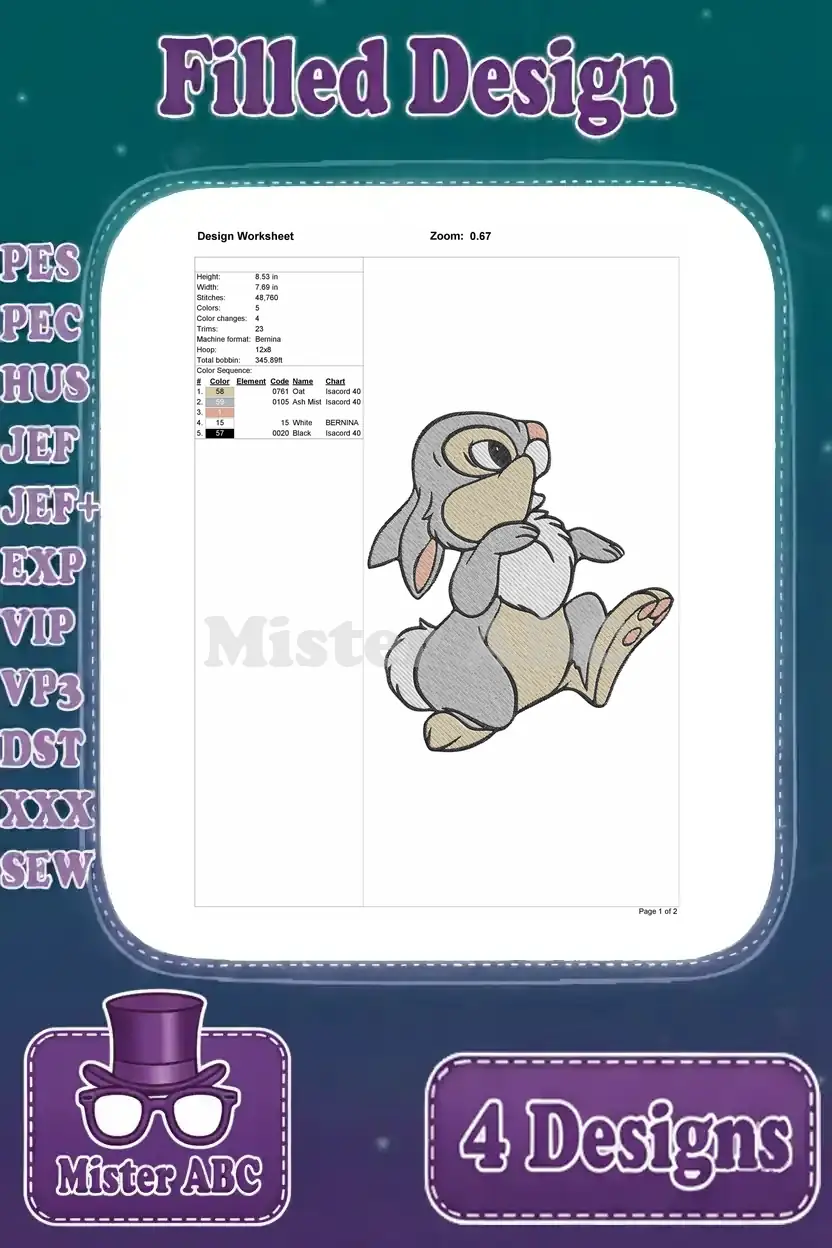 Bambi Thumper The Bunny Various Sitting And Inquisitive Character Stances – Filled Embroidery Design