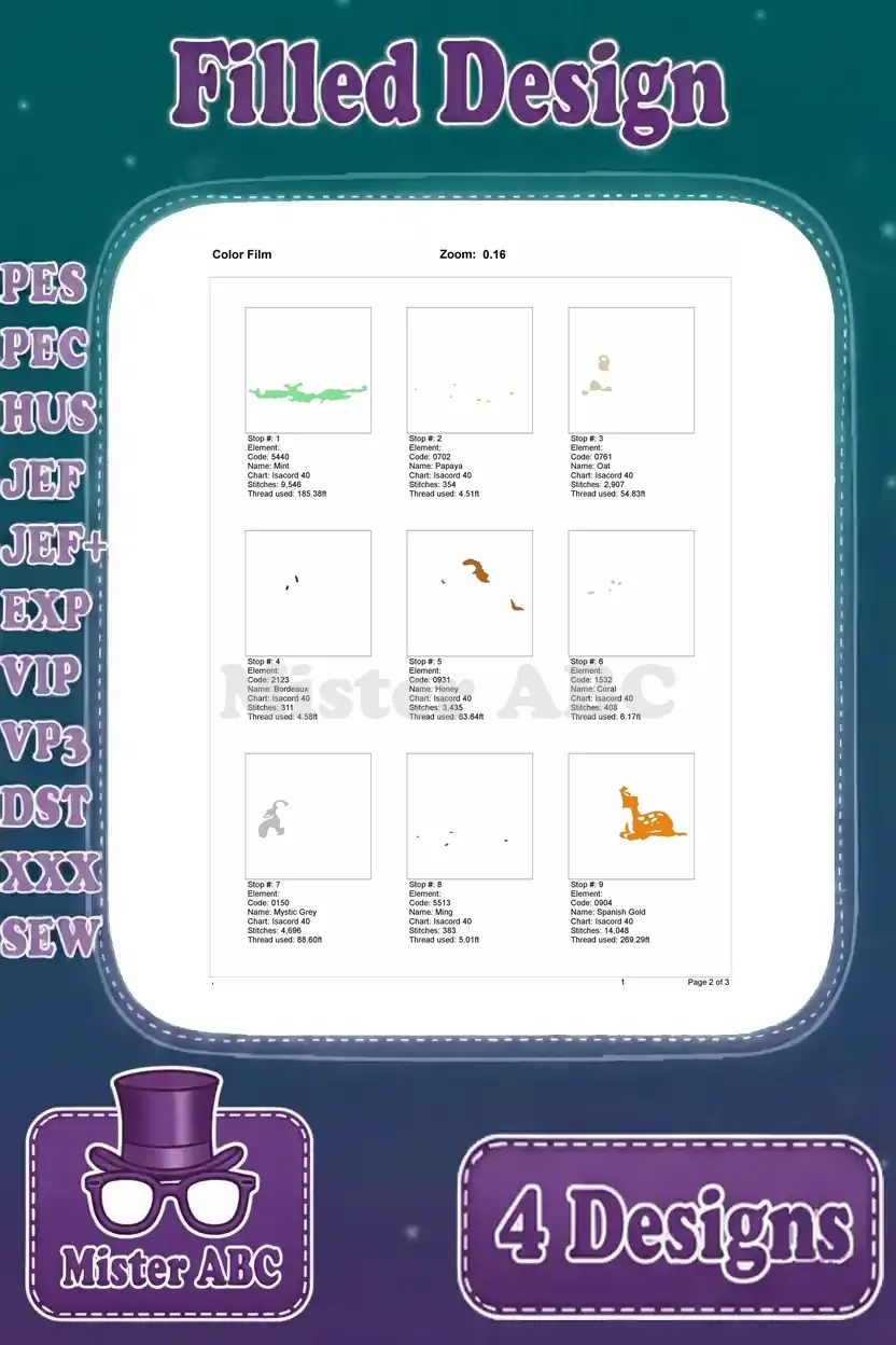 | Stitches | Colors | Thread Changes |