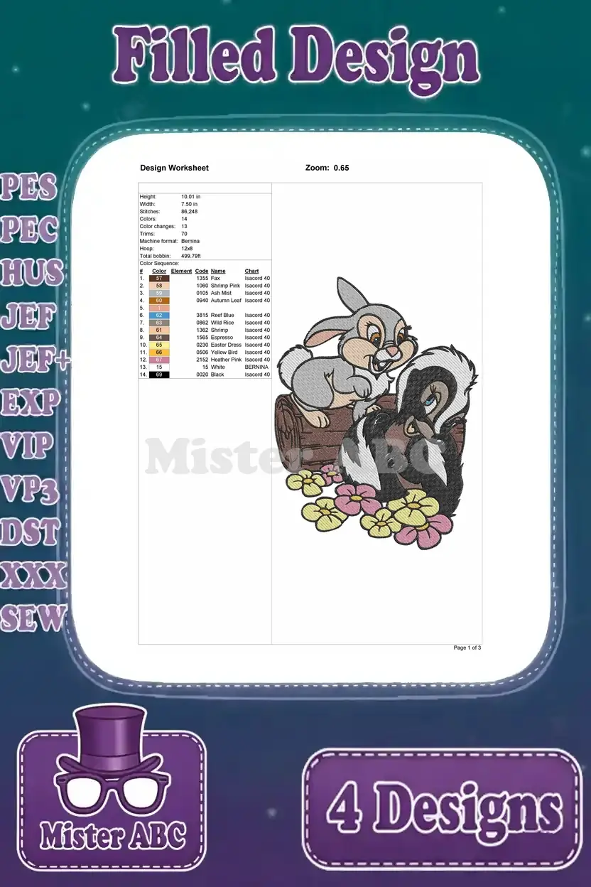 Bambi Thumper And Flower Playful Interactions And Forest Friendship Scenes – Filled Embroidery Design