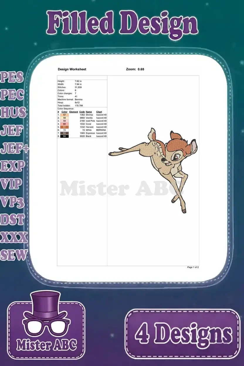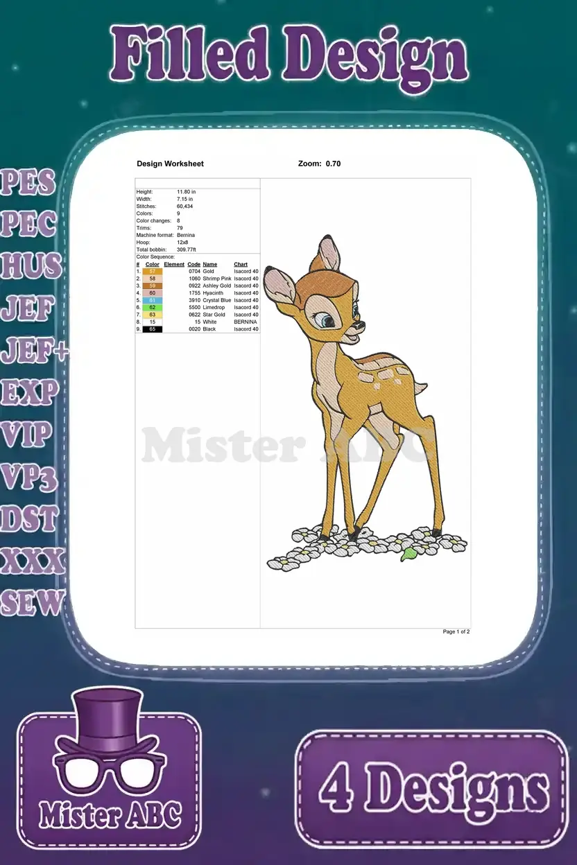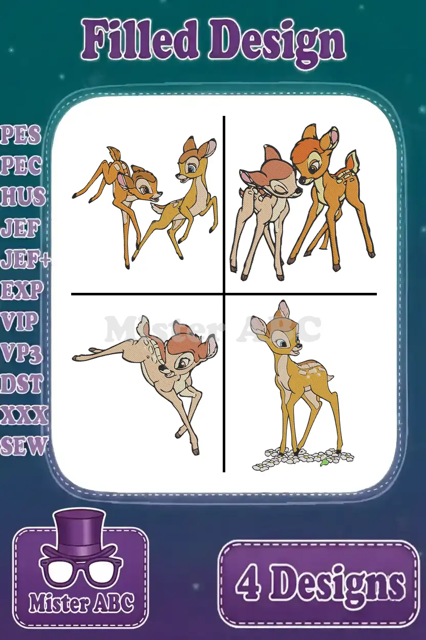 Bambi The Young Prince Of The Forest Various Standing And Curious Poses – Filled Embroidery Design