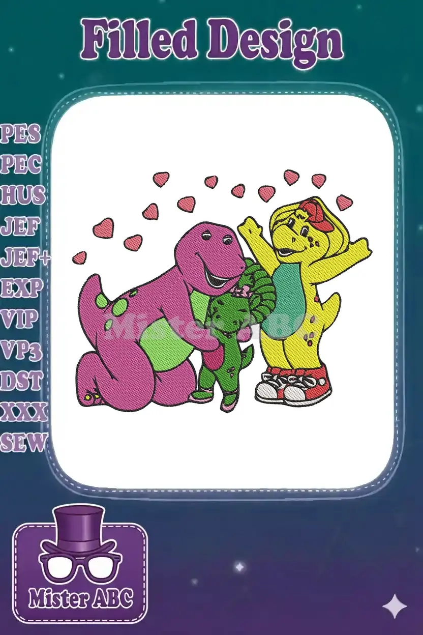 Barney Baby Bop BJ Dinosaurs Hugging Hearts Embroidery Designs