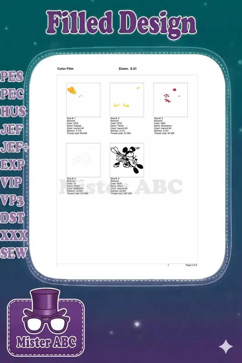 | Stitches | Colors | Thread Changes |