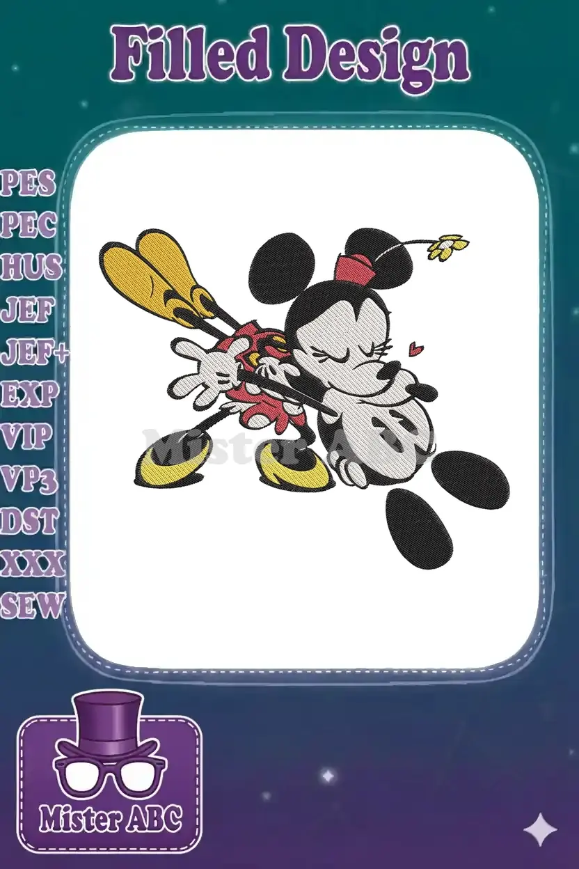 Bashful Minnie Mouse Holding Flowers Cute Disney Embroidery Designs