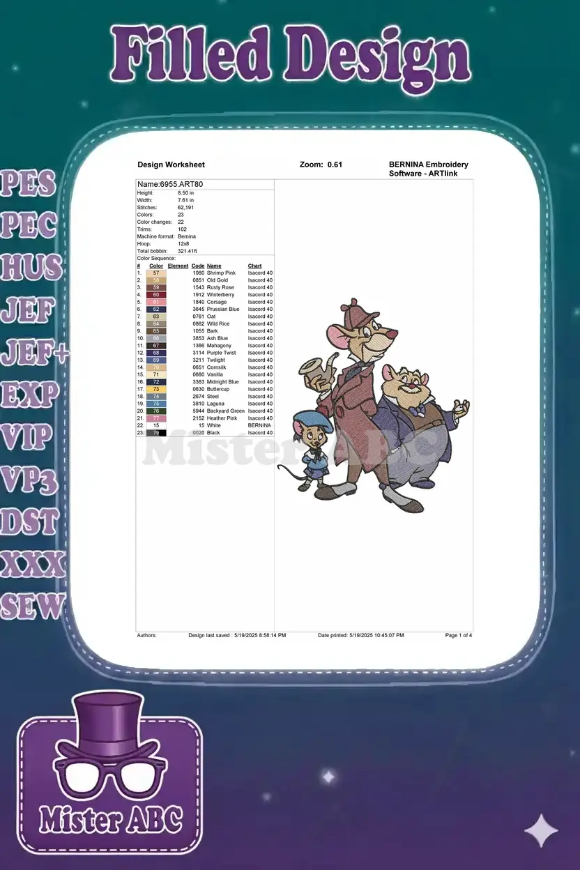 Basil Dawson Olivia Great Mouse Detective Cartoon Embroidery Designs