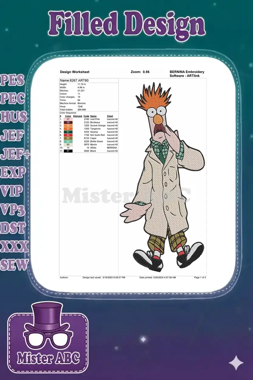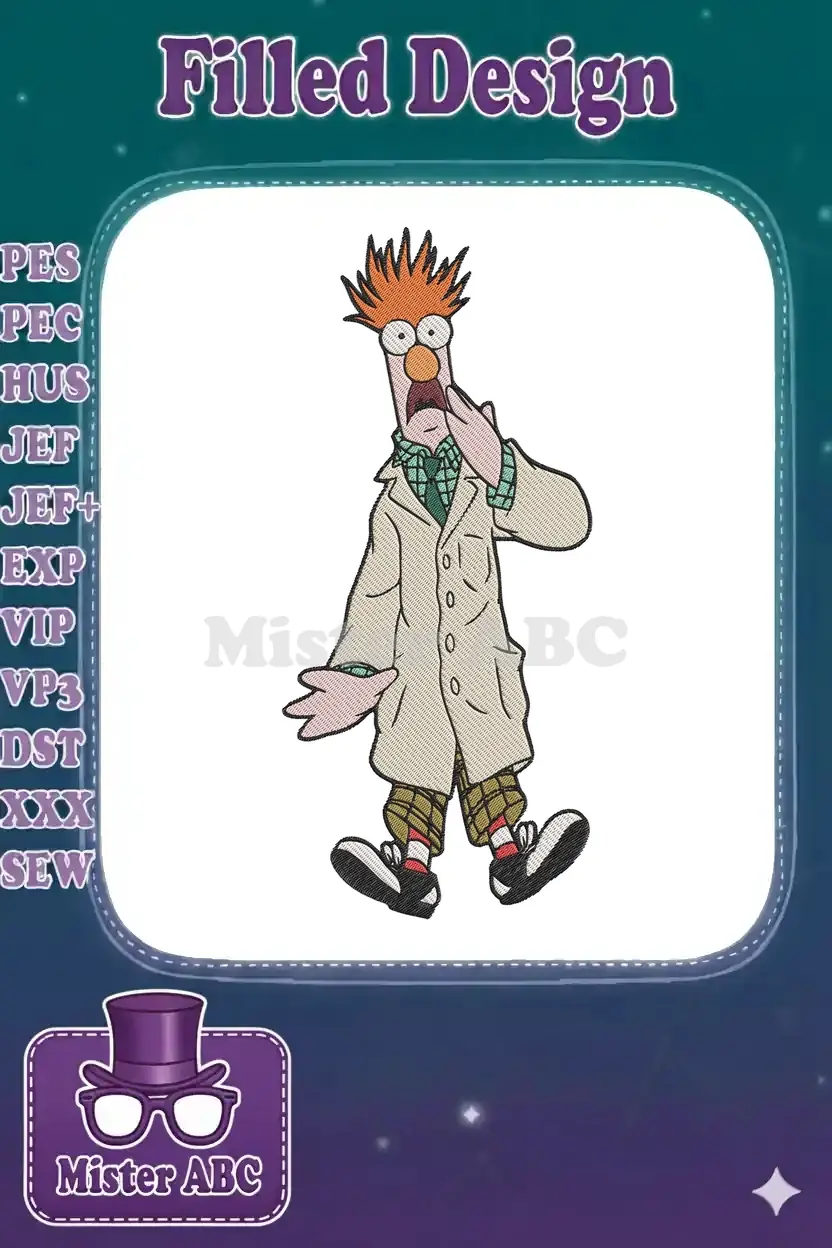 Beaker Muppet Scientist Surprised Orange Hair Embroidery Designs