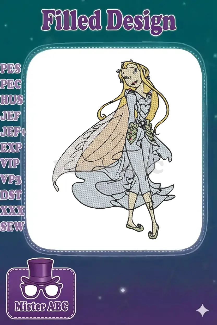 Beautiful blonde fairy princess with delicate wings embroidery designs