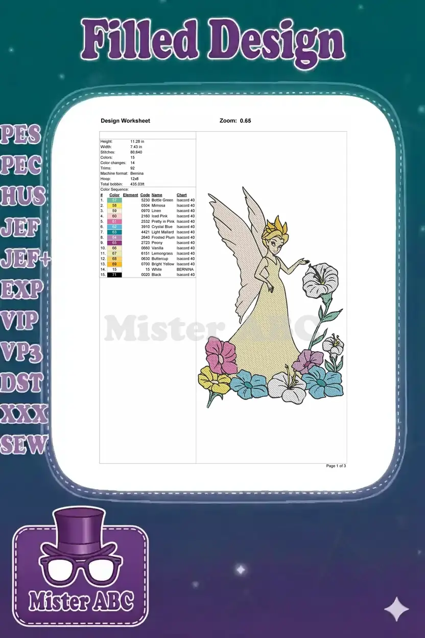 Beautiful Blonde Fairy and Vibrant Floral Embroidery Designs
