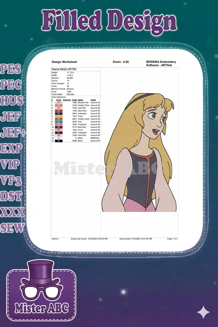 Beautiful blonde princess cartoon animation embroidery designs for fairy tale fans