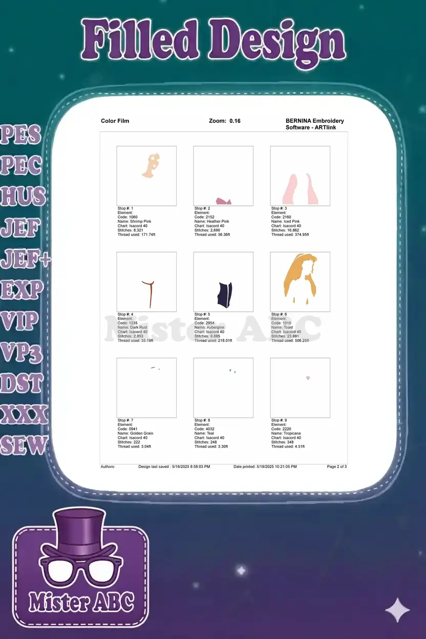 Embrace the magic with this exquisite embroidery of a classic fairytale princess, perfect for any project.