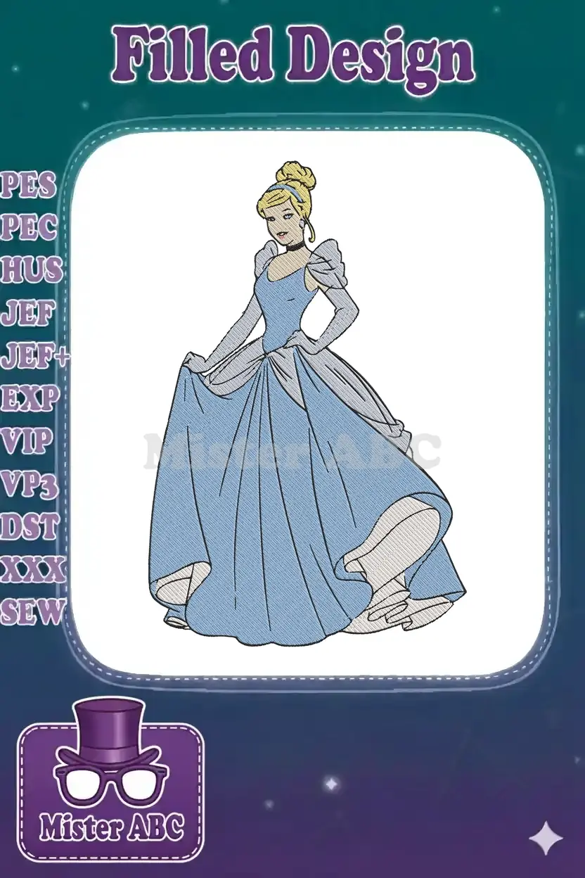 Beautiful Cinderella Fairy Tale Princess Blue Gown Embroidery Designs