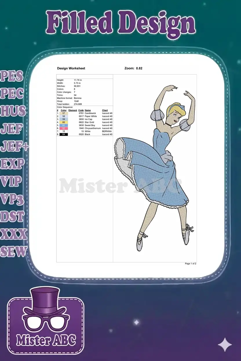 Beautiful Cinderella Princess Ballerina Dancing Embroidery Designs