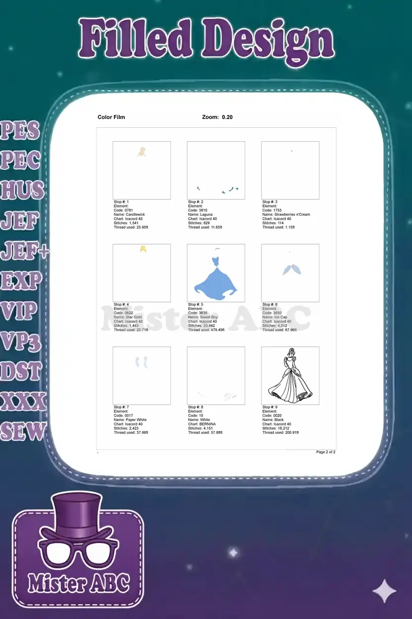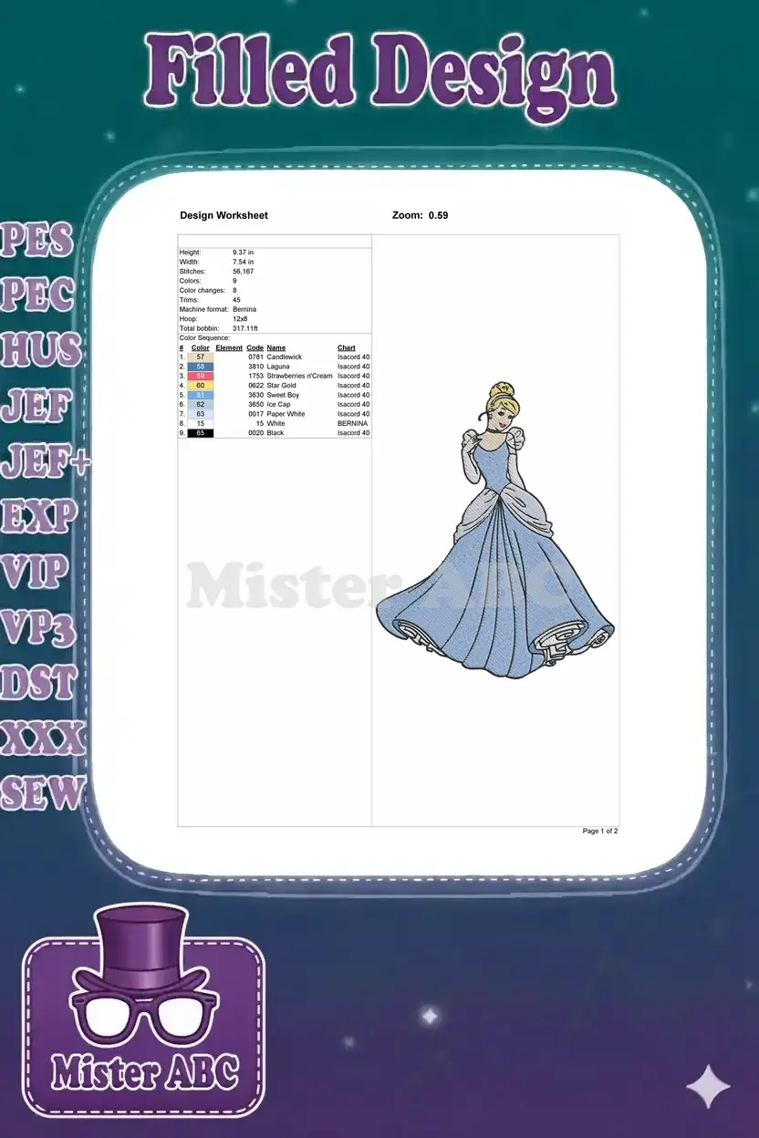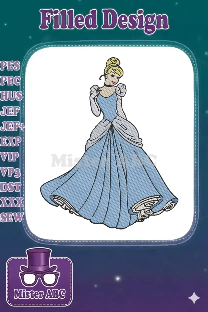 Beautiful Cinderella Princess Blue Gown Fairy Tale Embroidery Designs