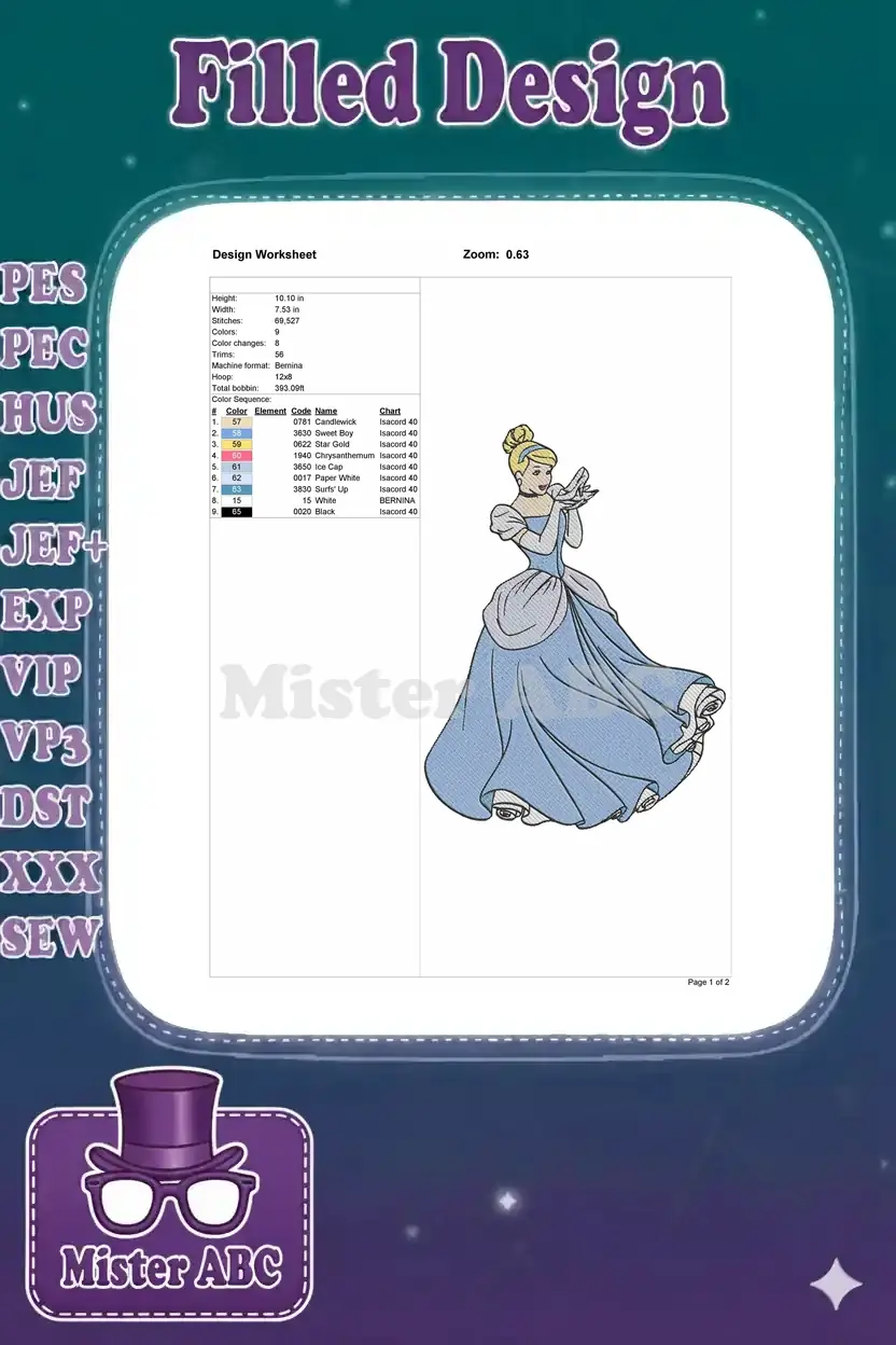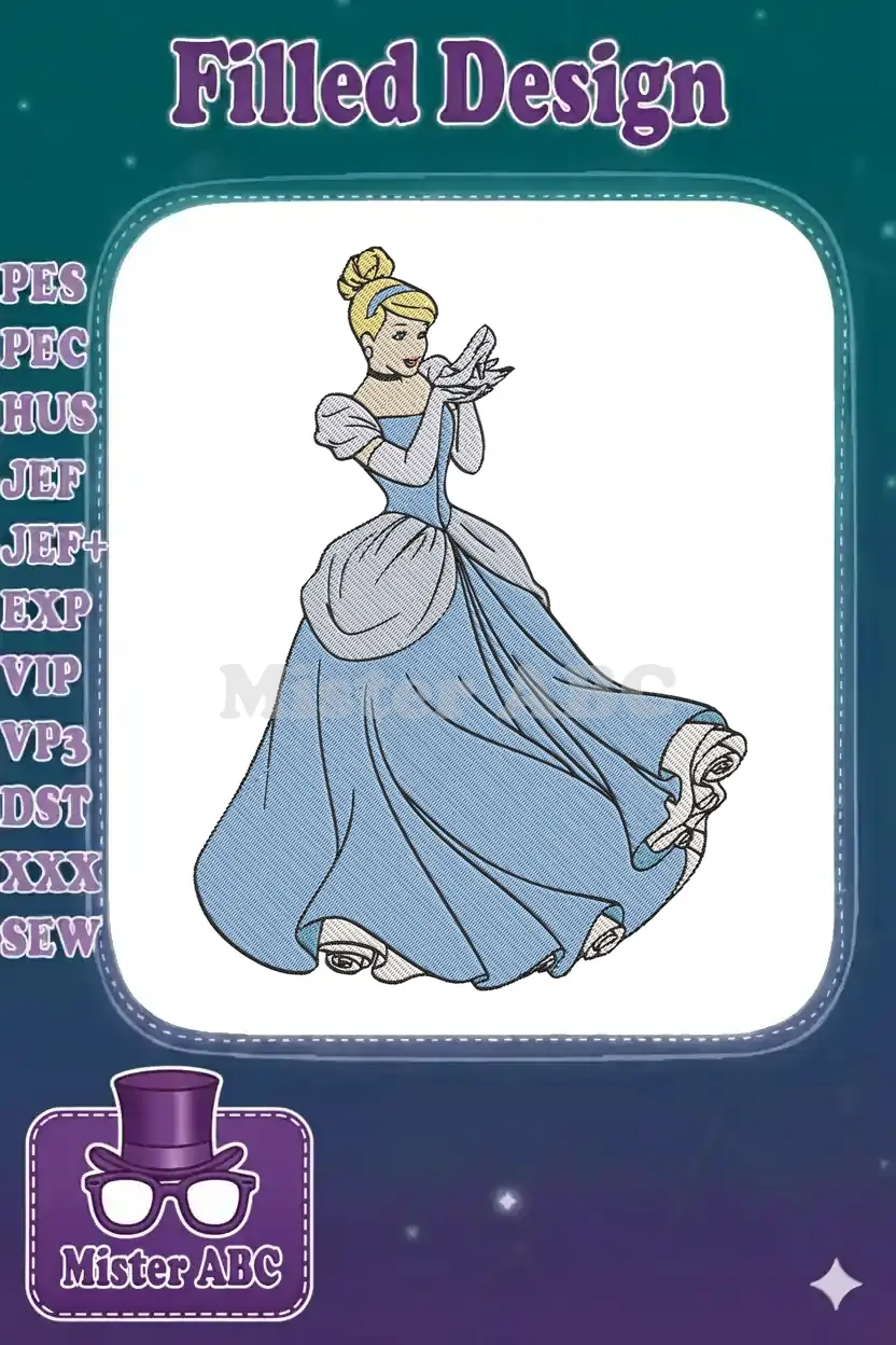 Experience the magic with this exquisite Cinderella embroidery design, perfect for adding a touch of fairy tale charm!