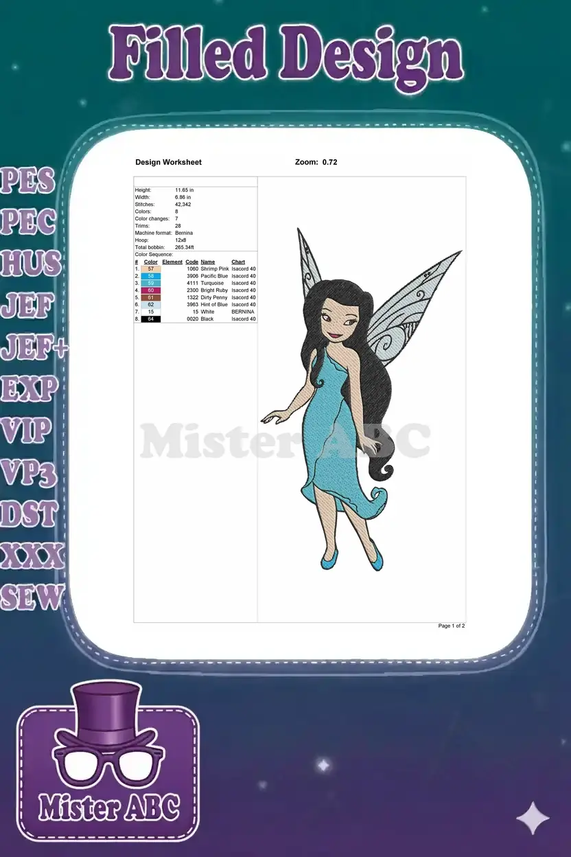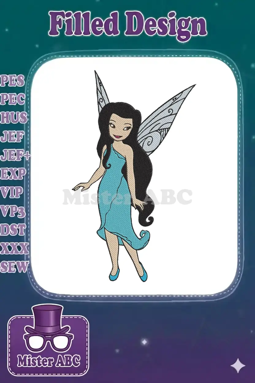 Beautiful dark-haired fairy with light blue dress embroidery designs