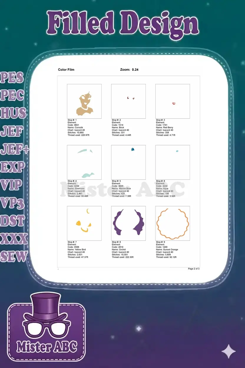 | Stitches | Colors | Thread Changes |