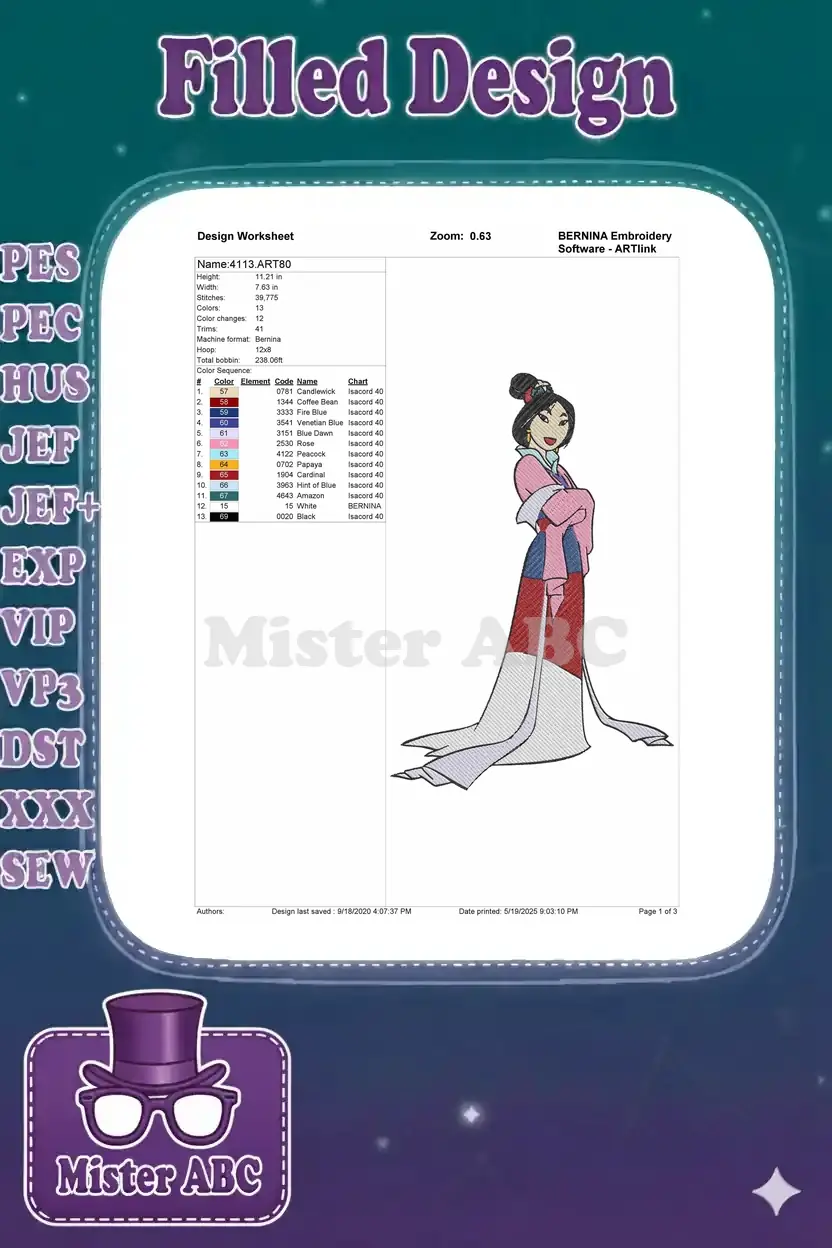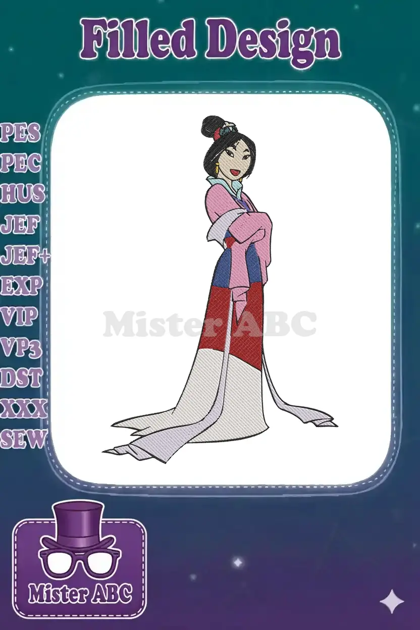 Beautiful Mulan in elegant pink red traditional dress embroidery designs