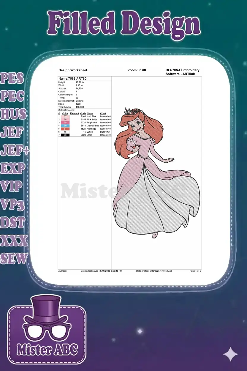 Beautiful Princess Ariel Red Hair Pink Gown Embroidery Designs