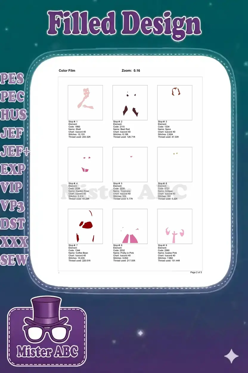 | Stitches | Colors | Thread Changes |
