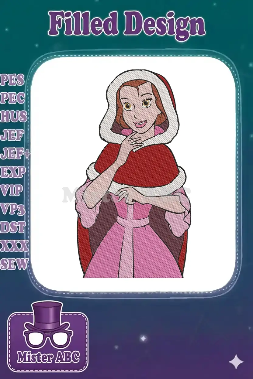 Beautiful Princess Belle in Pink Dress Red Cape Embroidery Designs