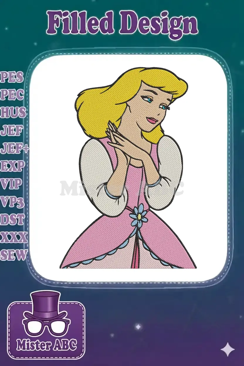 Beautiful Princess Cinderella Blonde Hair Blue Eyes Embroidery Designs