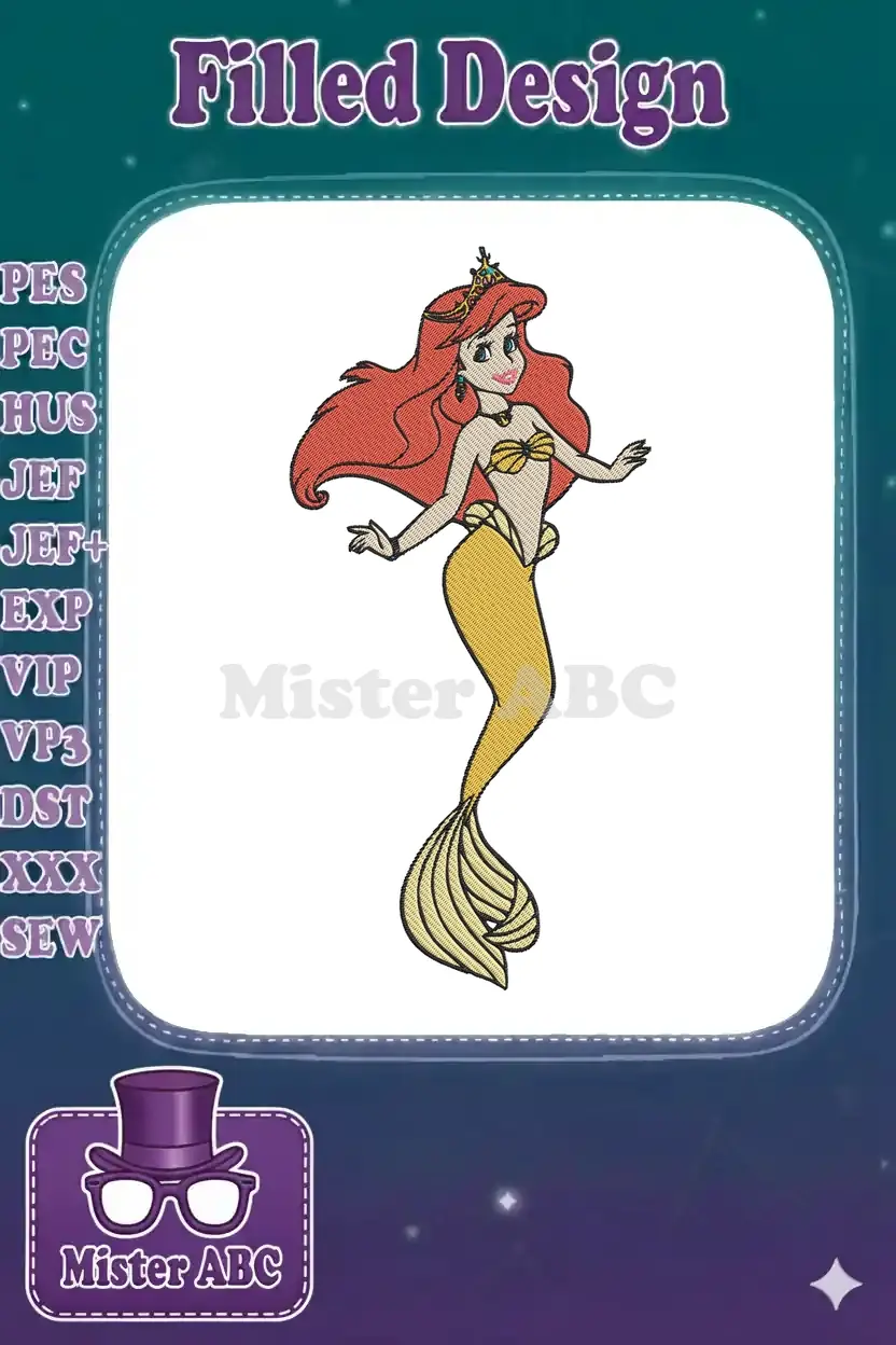 Beautiful red-haired mermaid princess embroidery designs for children