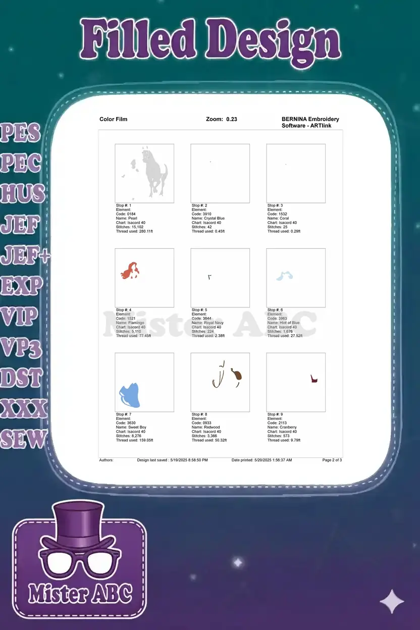 | Stitches | Colors | Thread Changes |