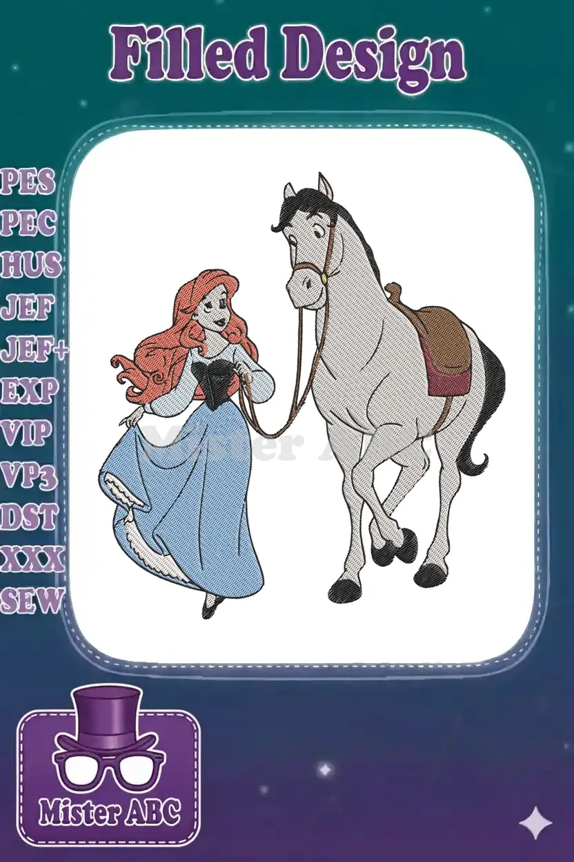 Beautiful Red-Haired Princess and Horse Friendship Embroidery Designs
