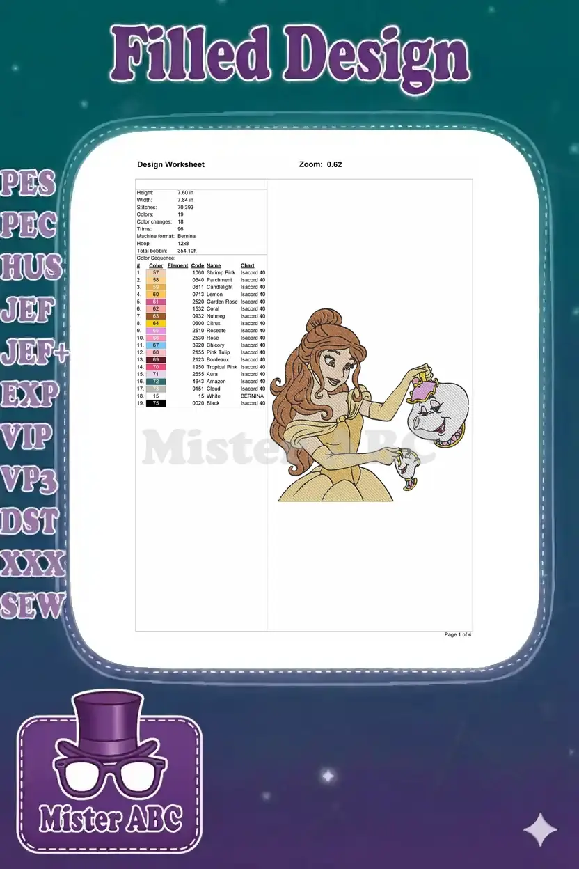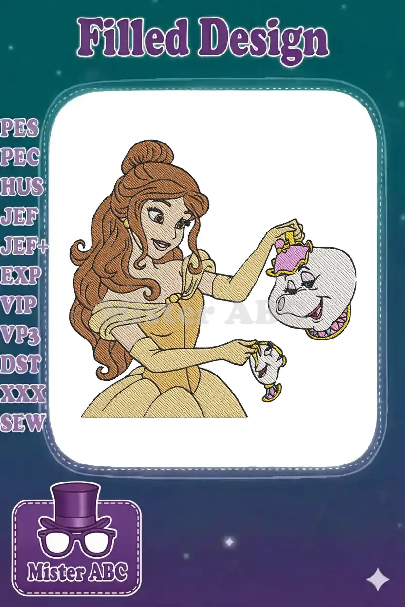 Beauty and the Beast Belle Mrs Potts Chip embroidery designs