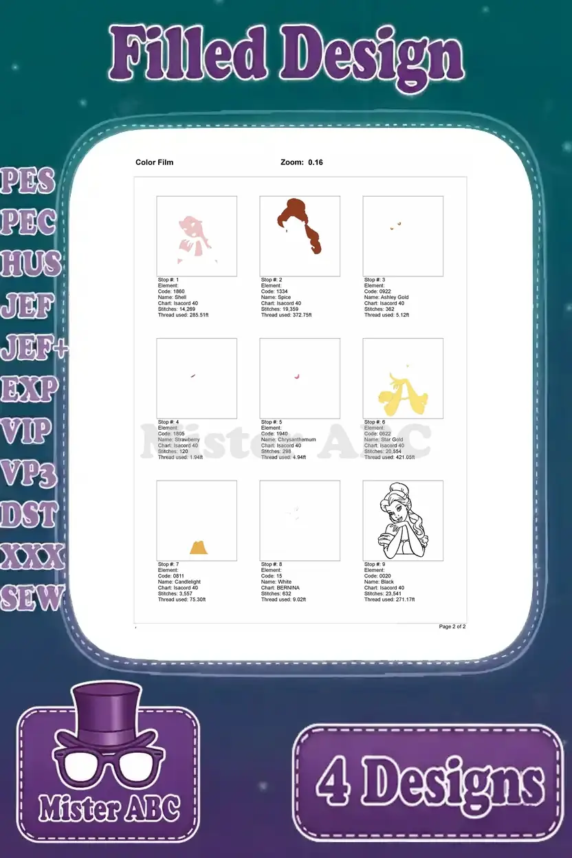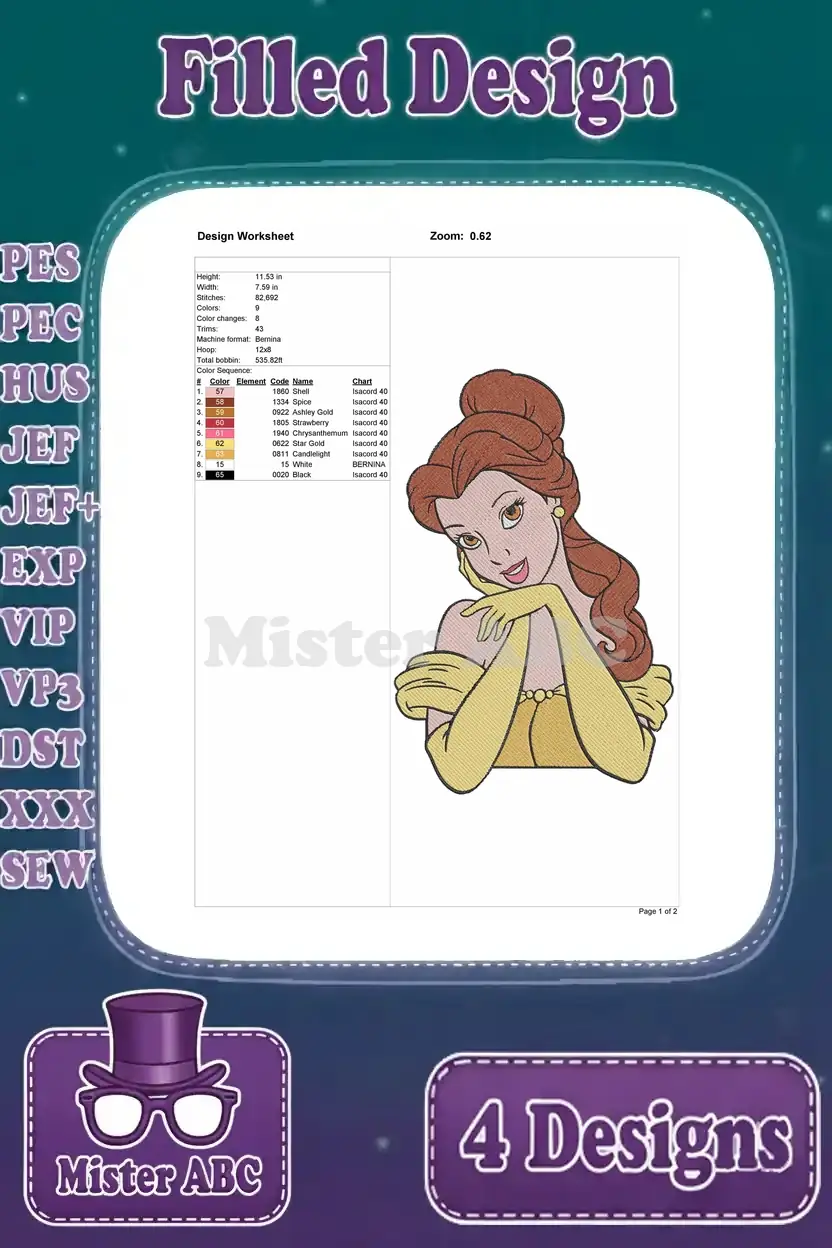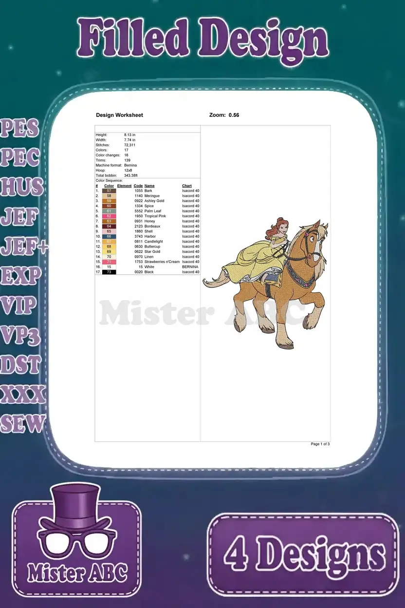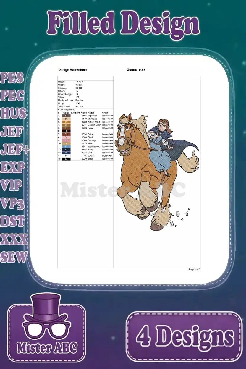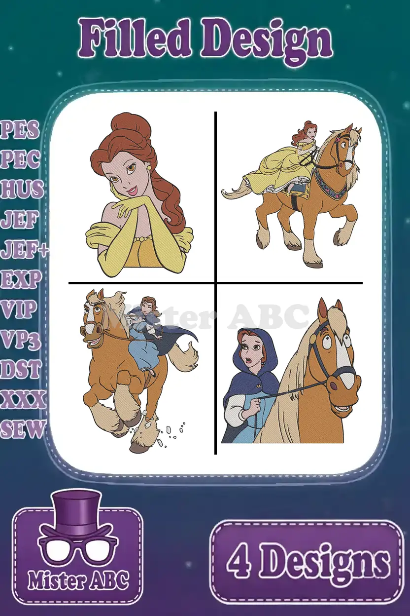 Experience the magic of Disney’s Belle and Philippe with this enchanting 4-design embroidery bundle. Perfect for fans!