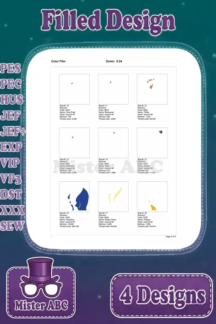 | Stitches | Colors | Thread Changes |