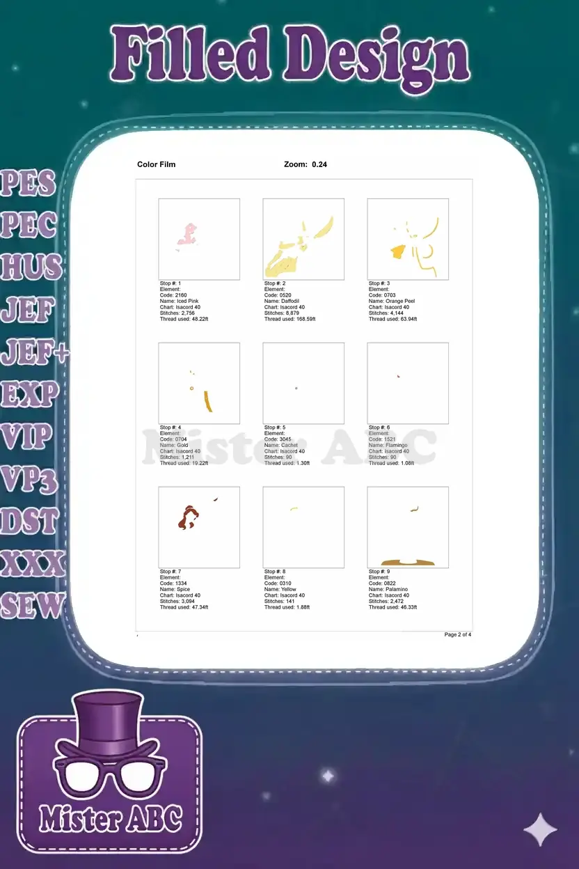 | Stitches | Colors | Thread Changes |