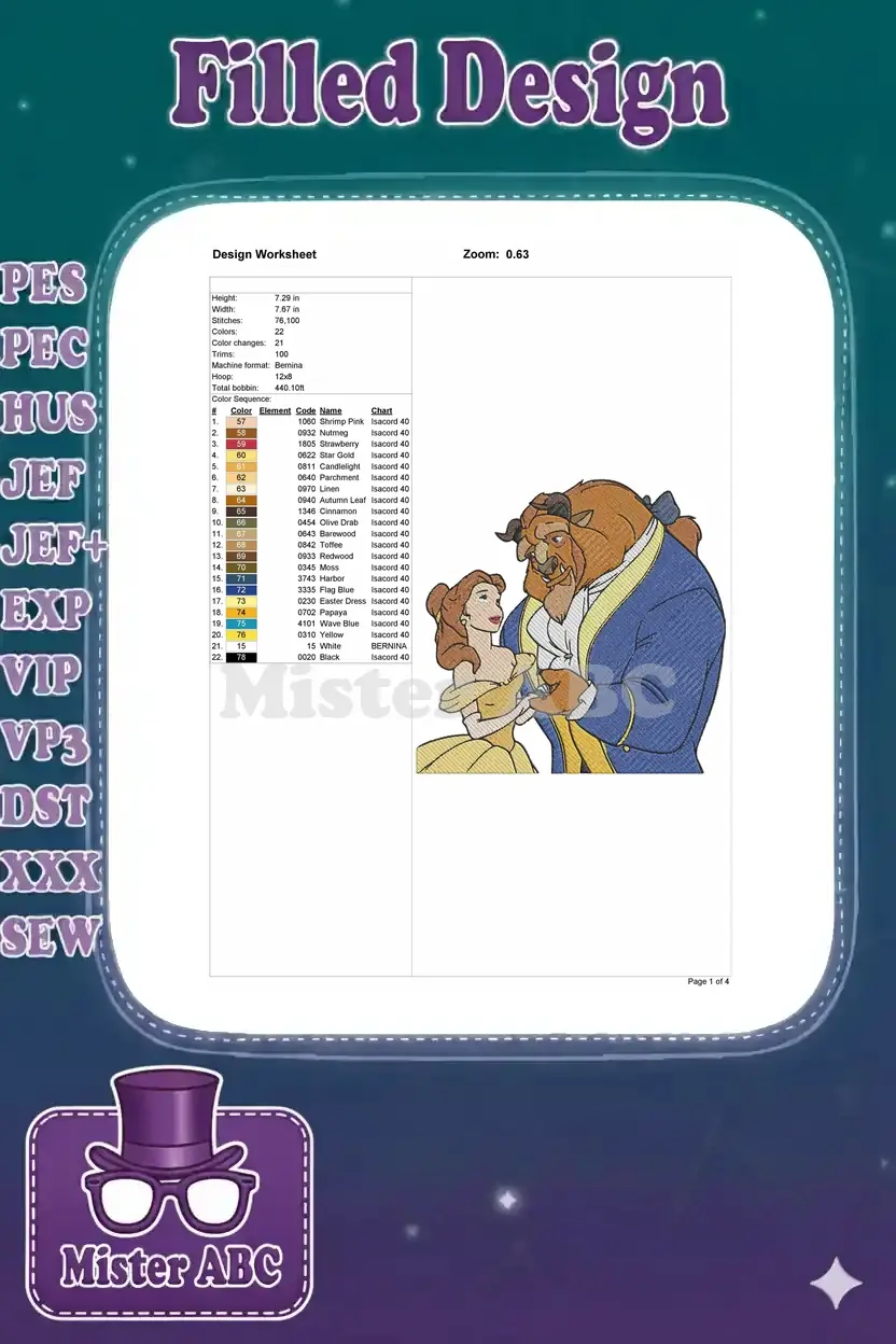 Belle and Beast Disney fairytale romance embroidery designs