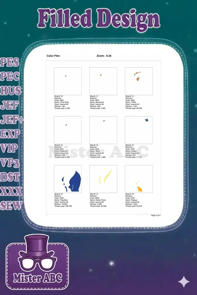| Stitches | Colors | Thread Changes |