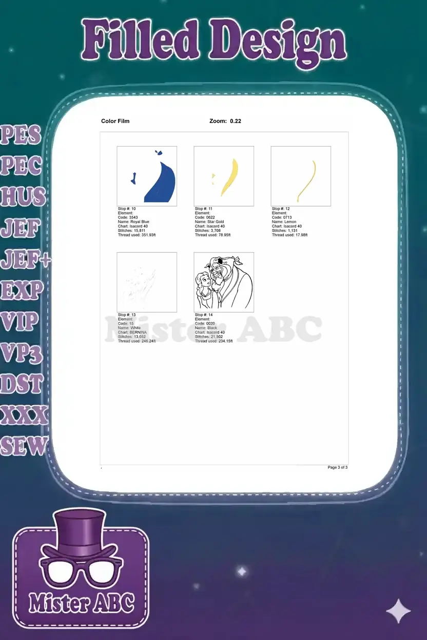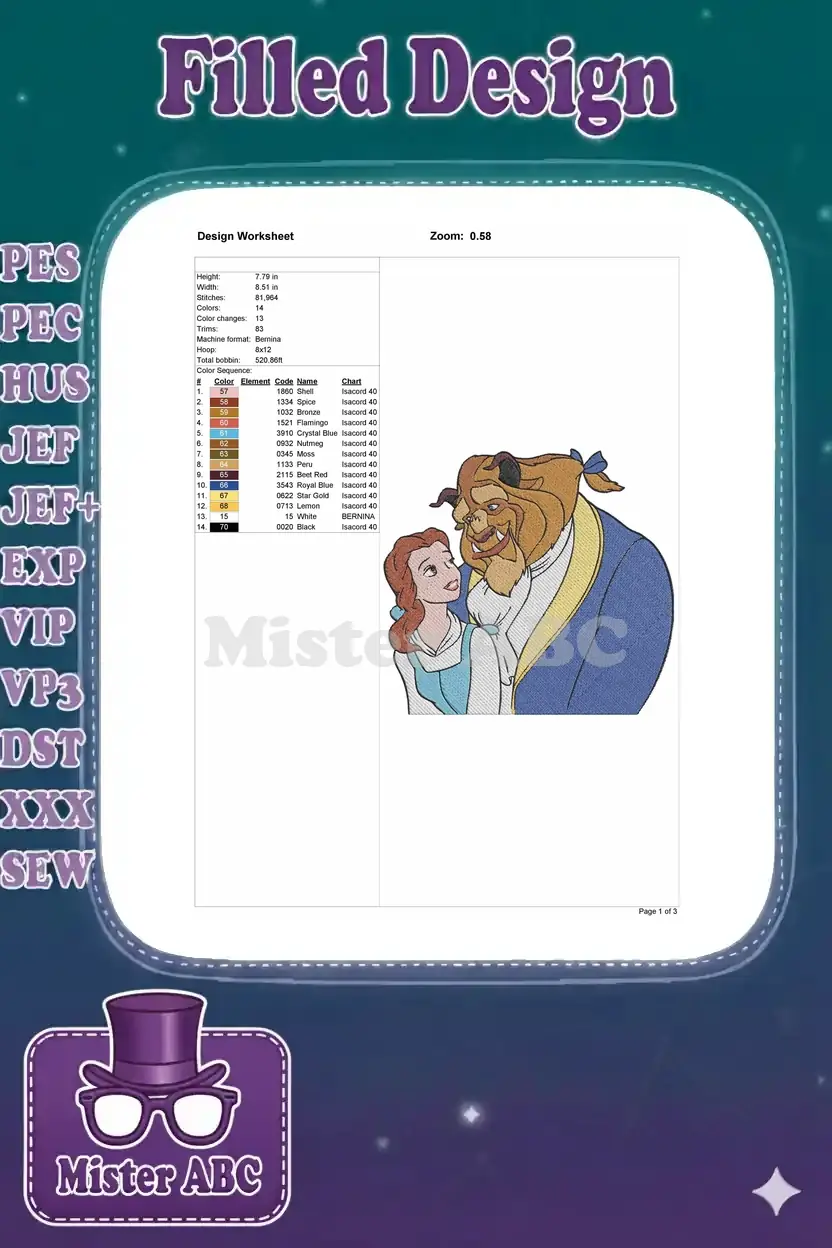 Belle and Beast fairytale embroidery designs for classic Disney lovers