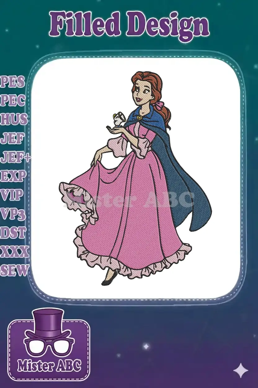 Belle with Chip embroidery designs from Beauty and the Beast