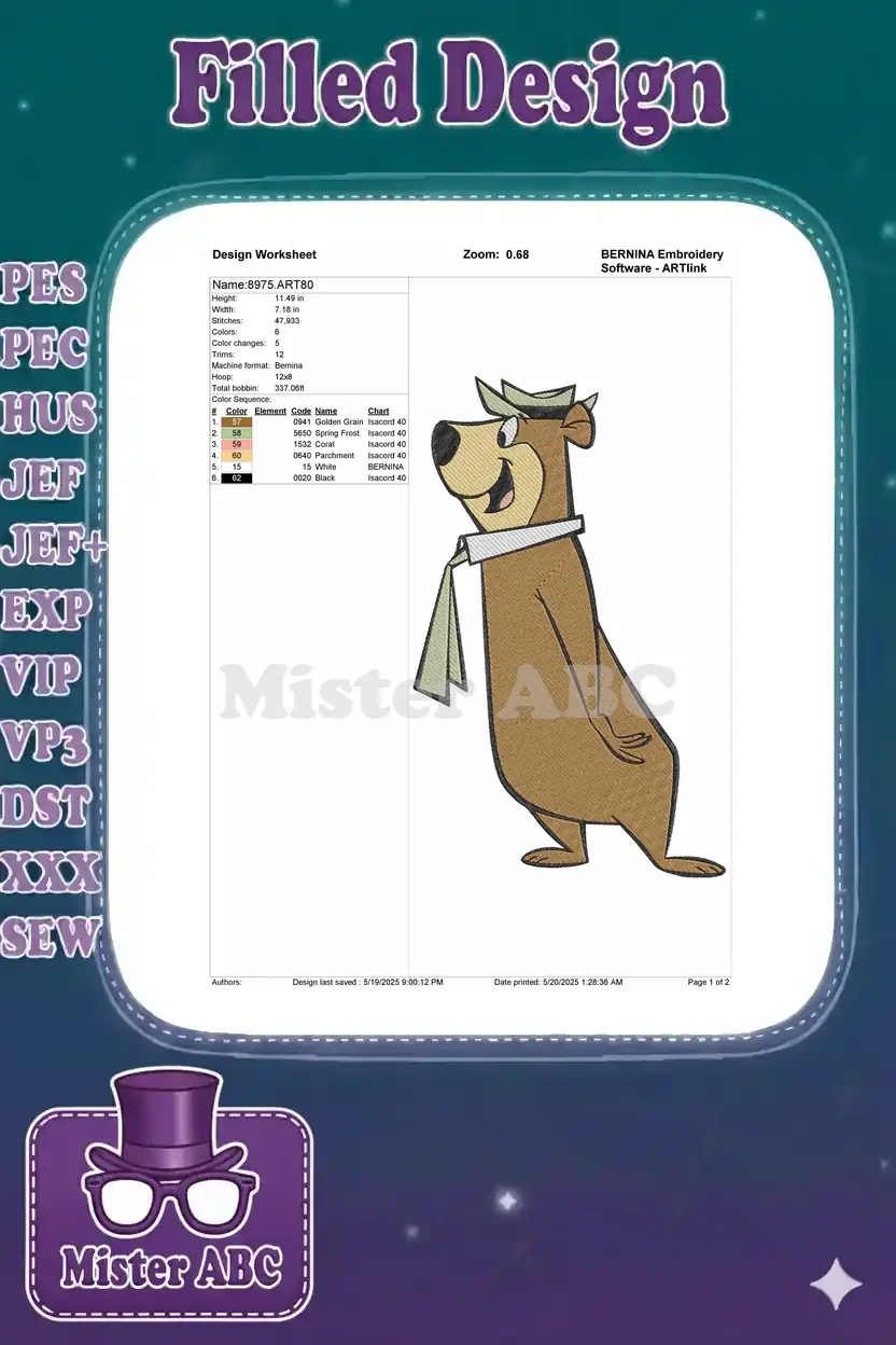 Beloved Yogi Bear cartoon character machine embroidery designs