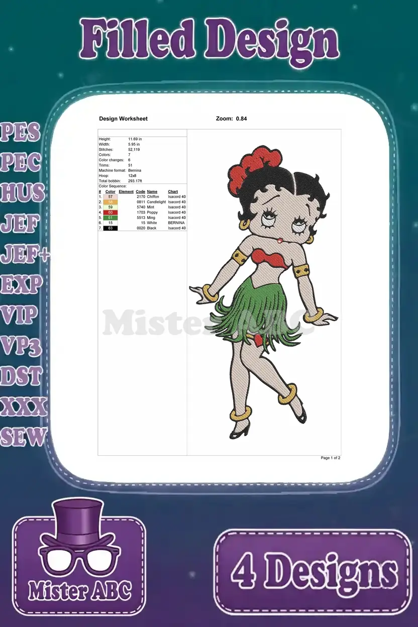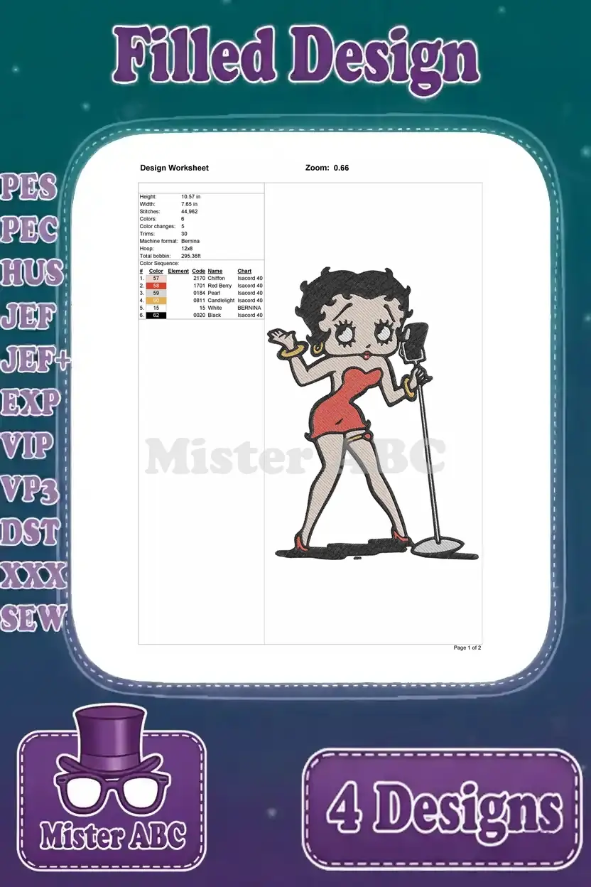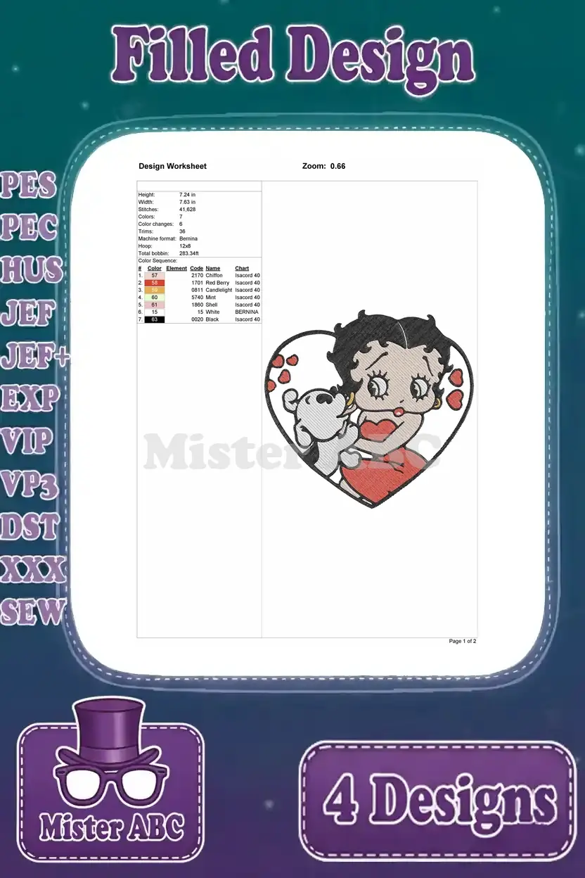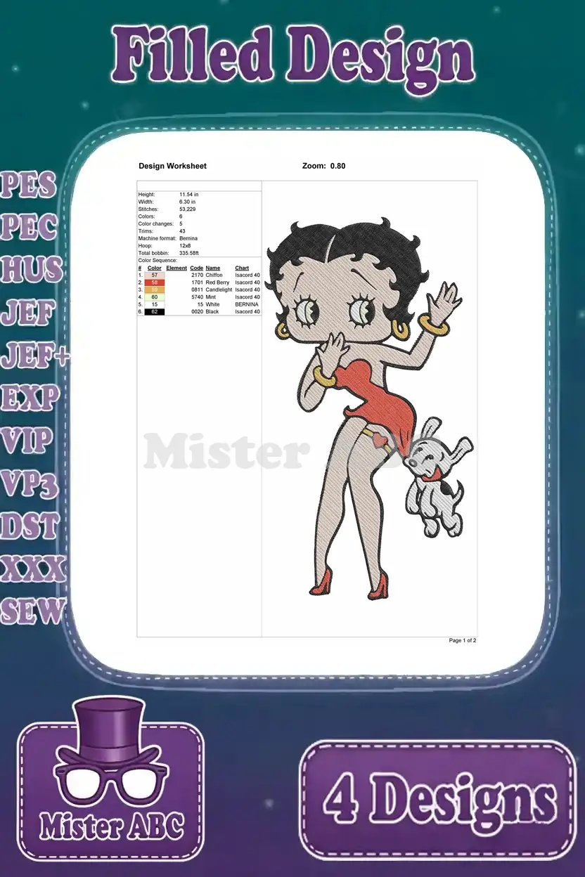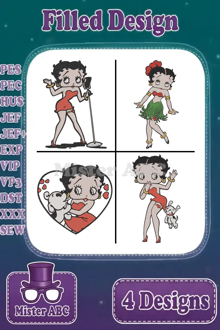 Betty Boop Christmas Outfit With Pudgy Dog And Romantic He Portrait – Filled Embroidery Design