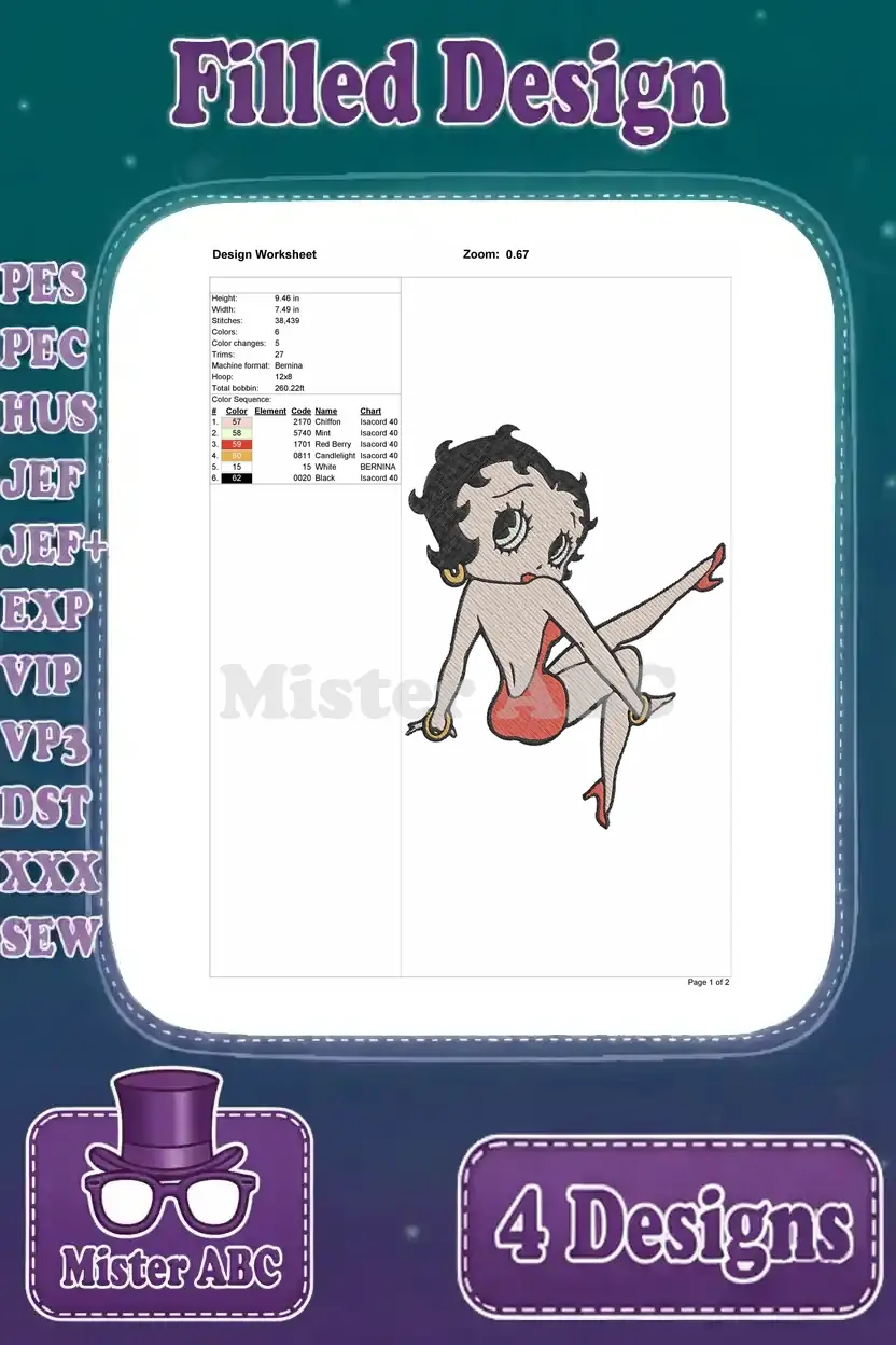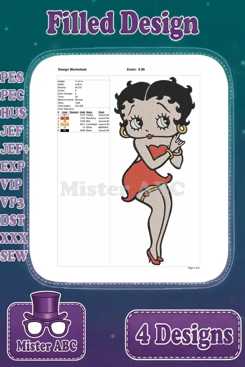 Betty Boop Flirty And Dynamic Poses In Her Signature Red Dress Collection – Filled Embroidery Design