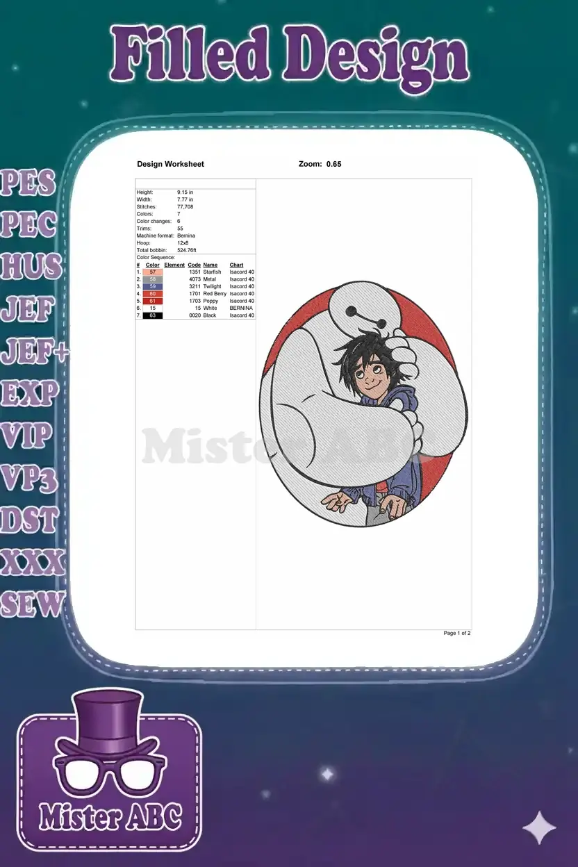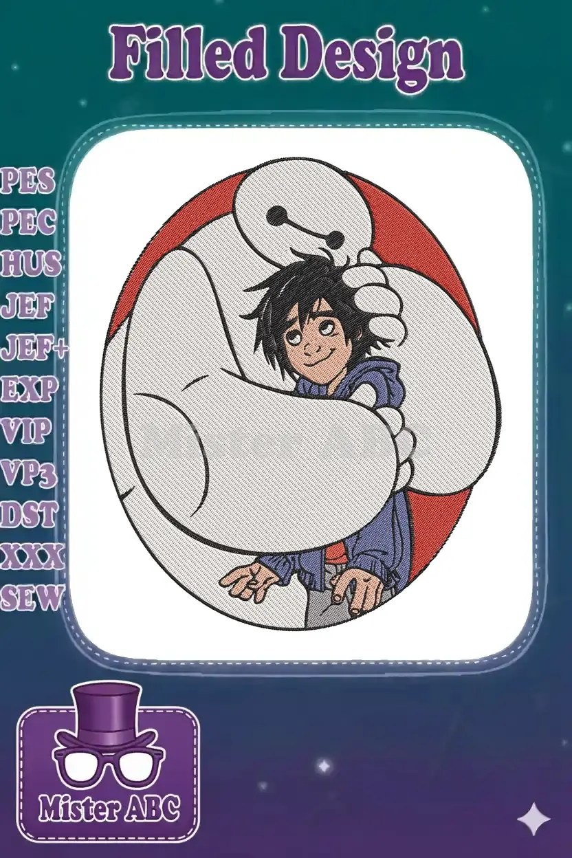 Big Hero 6 Baymax and Hiro Hamada hugging embroidery designs
