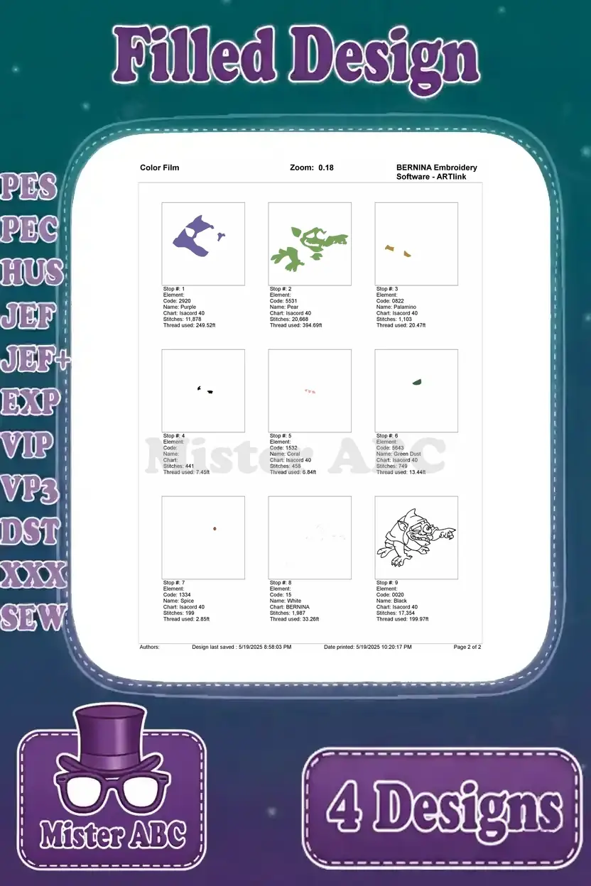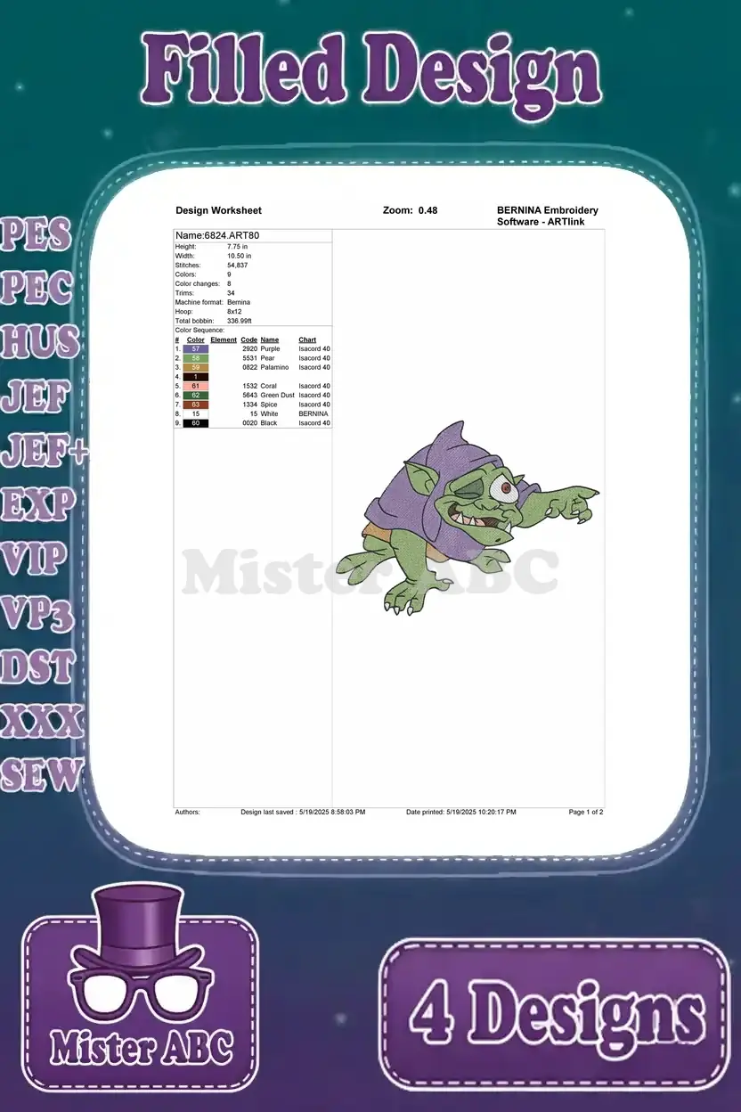 Experience enchanting embroidery with this 4-design bundle. Iconic characters and filled stitch details bring magical fantasy to life.
