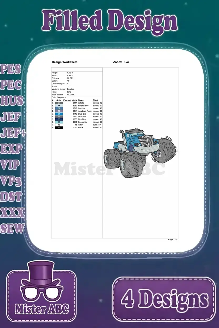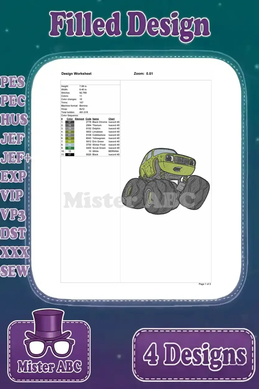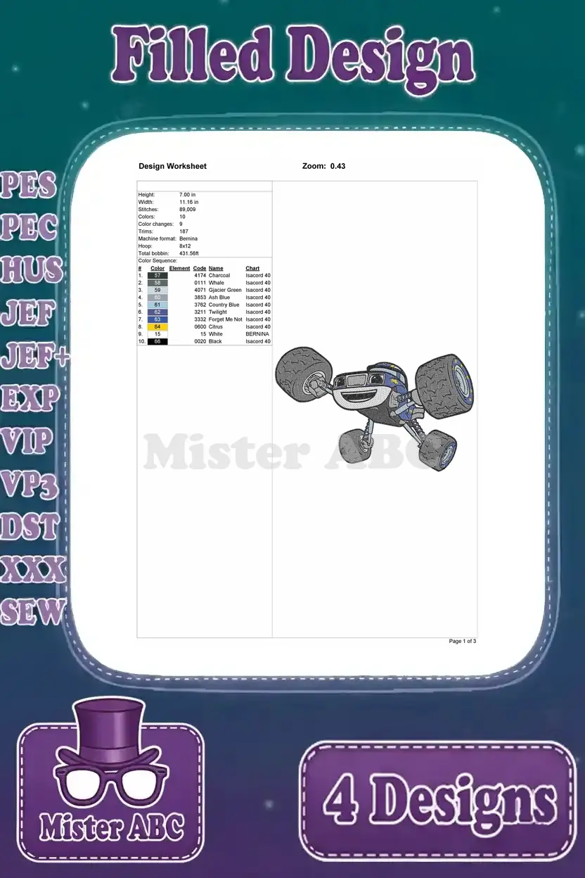Blaze And The Monster Machines Blaze Crusher And Aj Character Poses – Filled Embroidery Design
